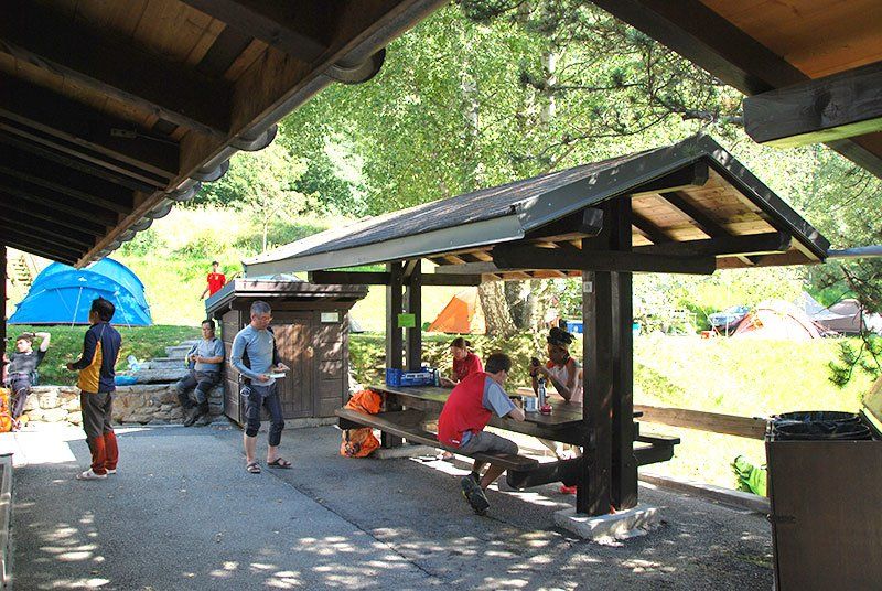 - Gente fuera del camping -